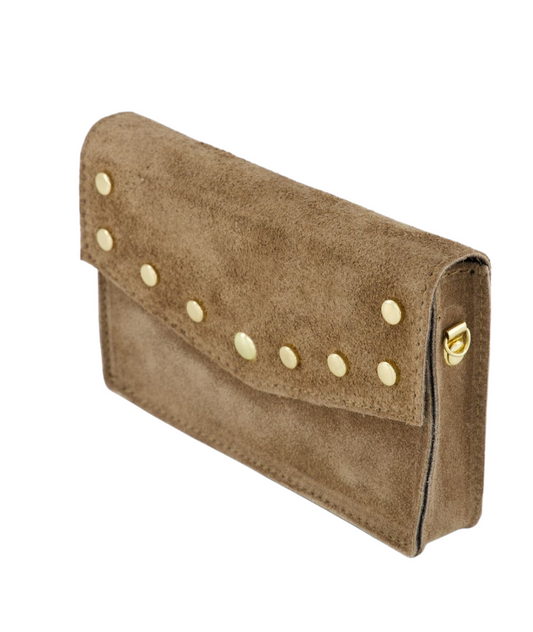 Suède Schoudertas met Gouden Studs – Tijdloos & Chic