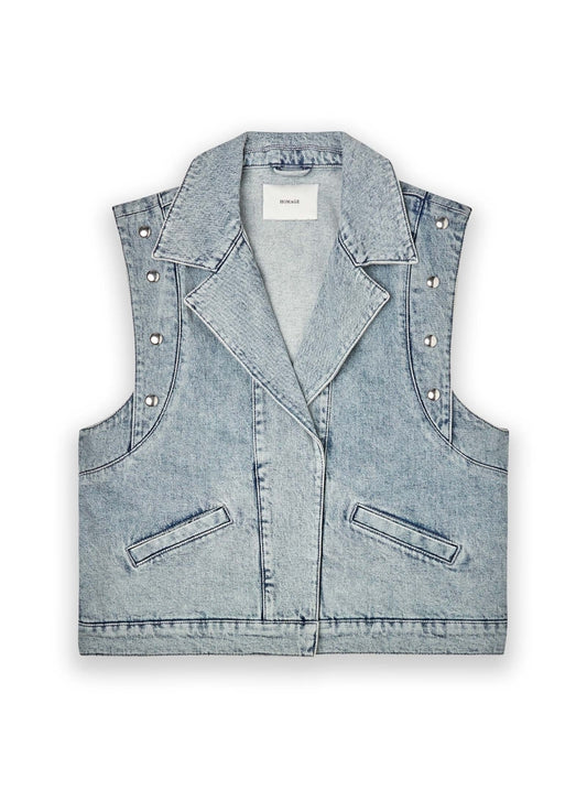 Denim Gilet met Studs – Vintage Wash & Stoere Look