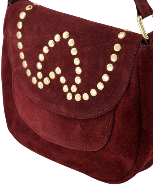 Bordeauxrode Suède Schoudertas – Goudkleurige Studs & Boho-Chic Flair