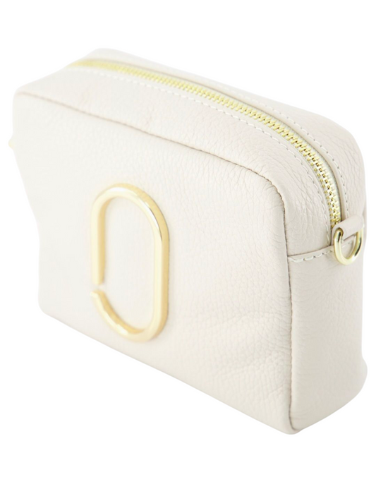 Witte Leren Crossbodytas – Goudkleurig Accent & Luxe Afwerking