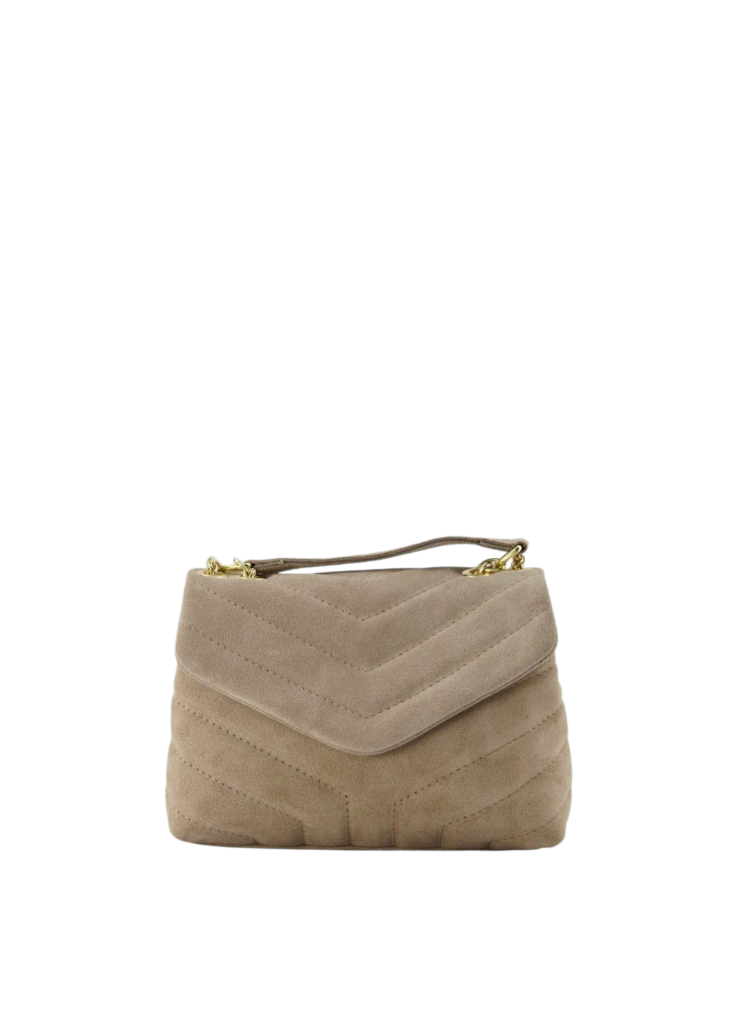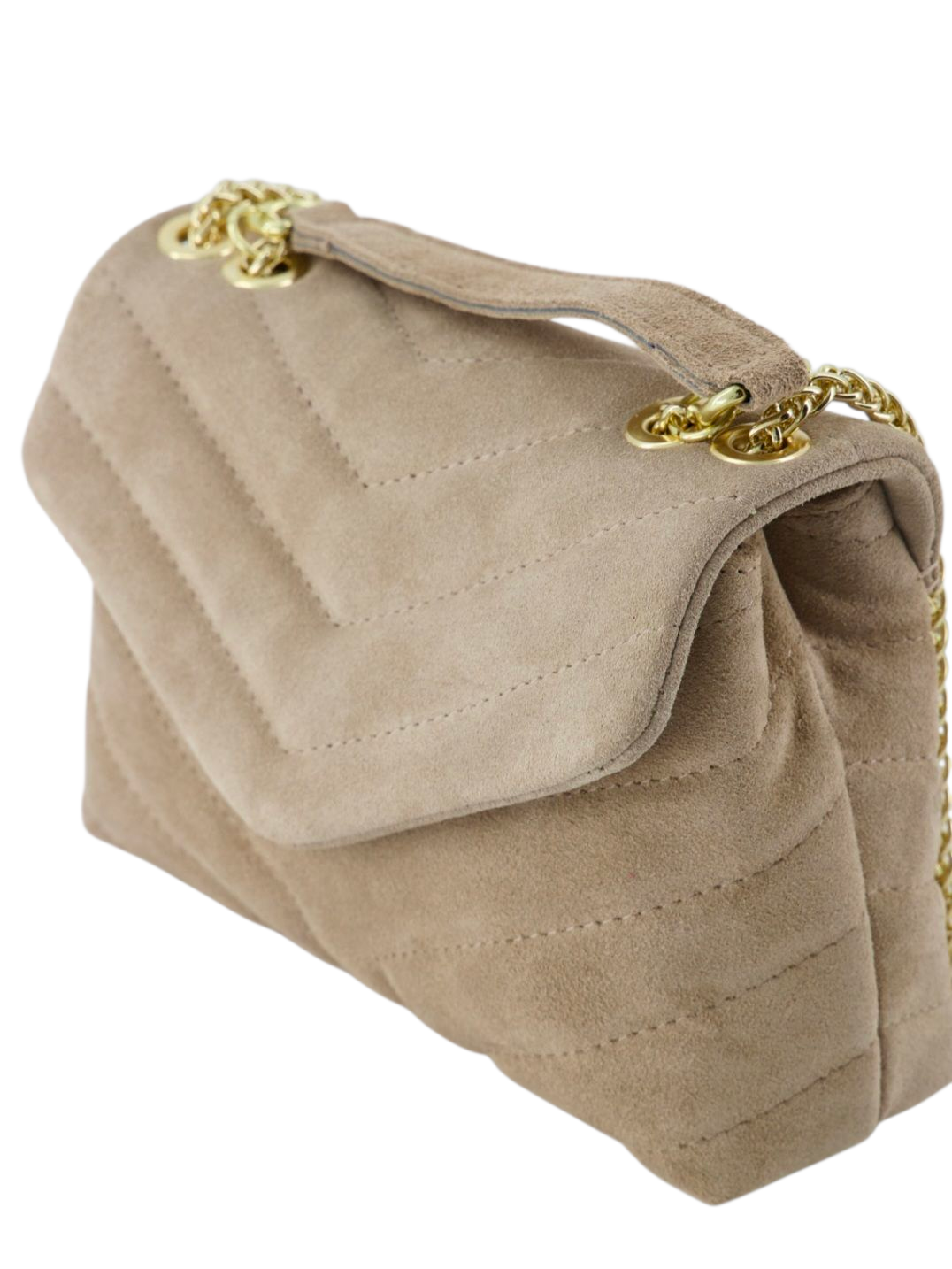 Beige Suède Schoudertas – Quilted Design met Gouden Ketting