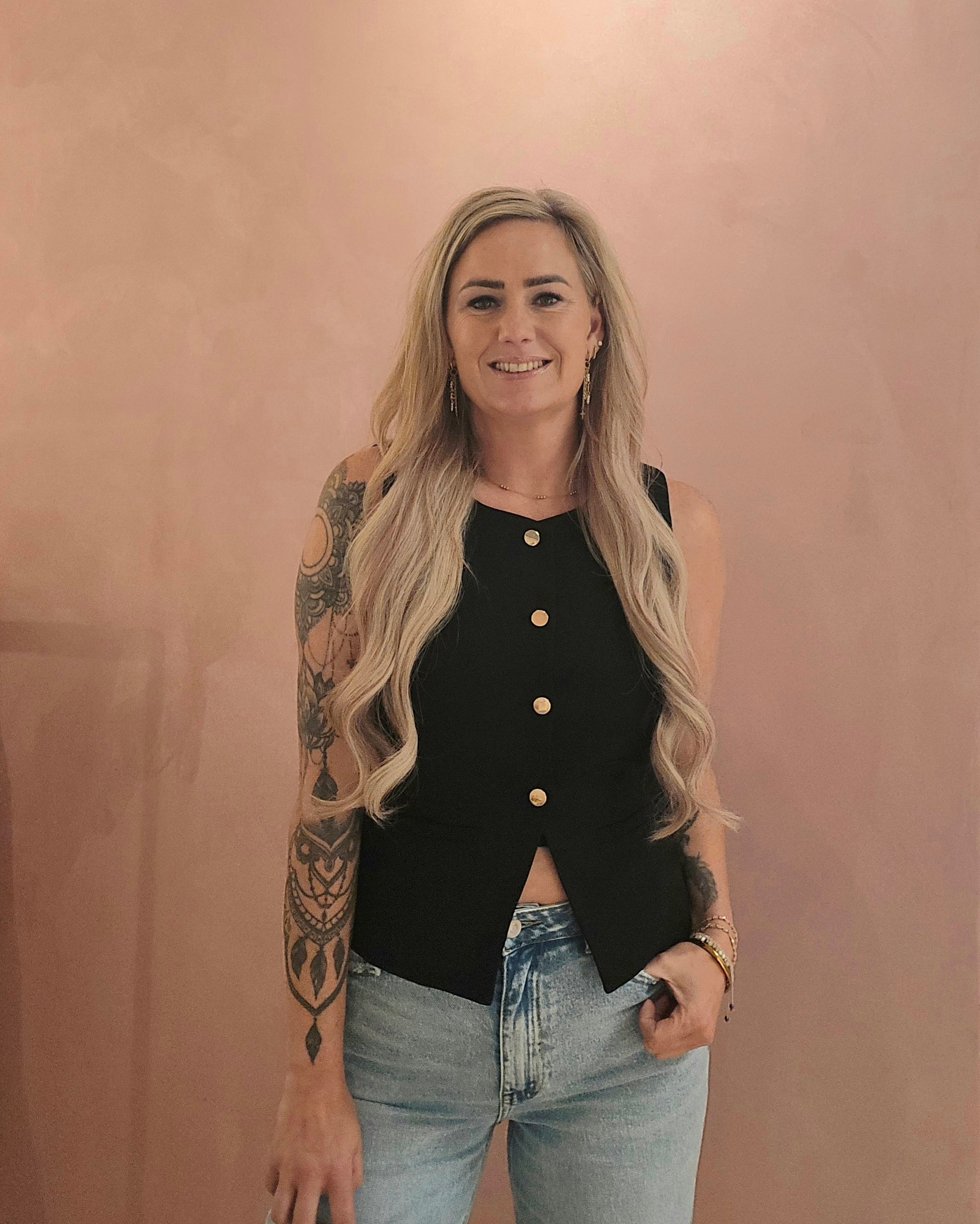 Diese schwarze Weste mit goldenen Knöpfen ist die perfekte Ergänzung für einen schicken und zugleich trendigen Look. Dank der taillierten Passform und des eleganten Designs lässt sie sich lässig zur Jeans oder stilvoll über einer Bluse oder einem Kleid tragen.