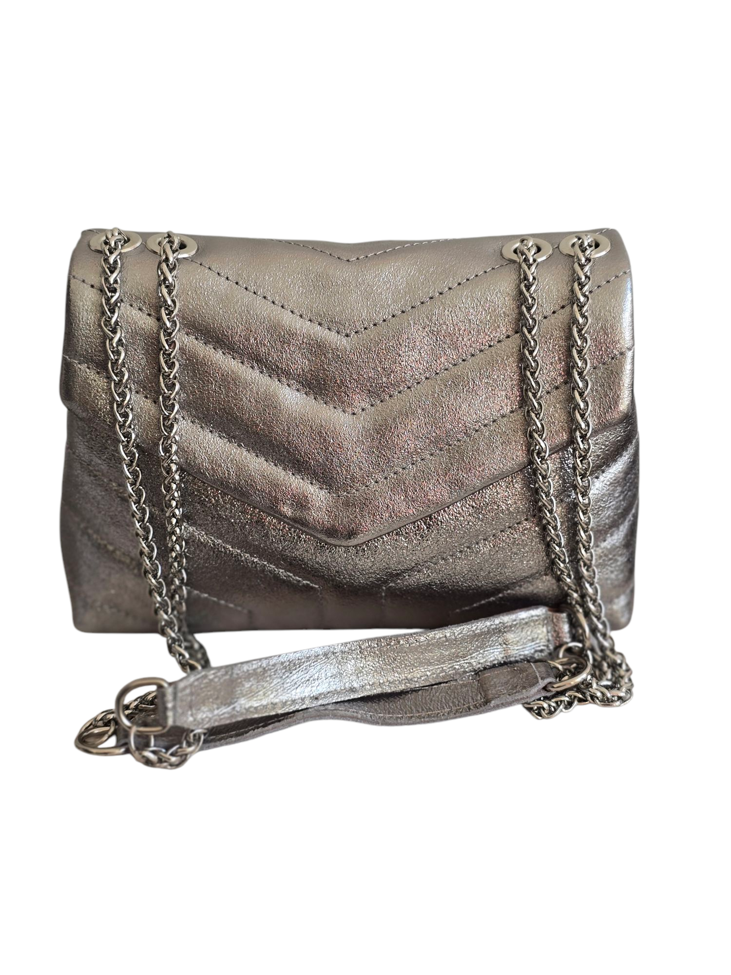 Silberne Umhängetasche aus Leder