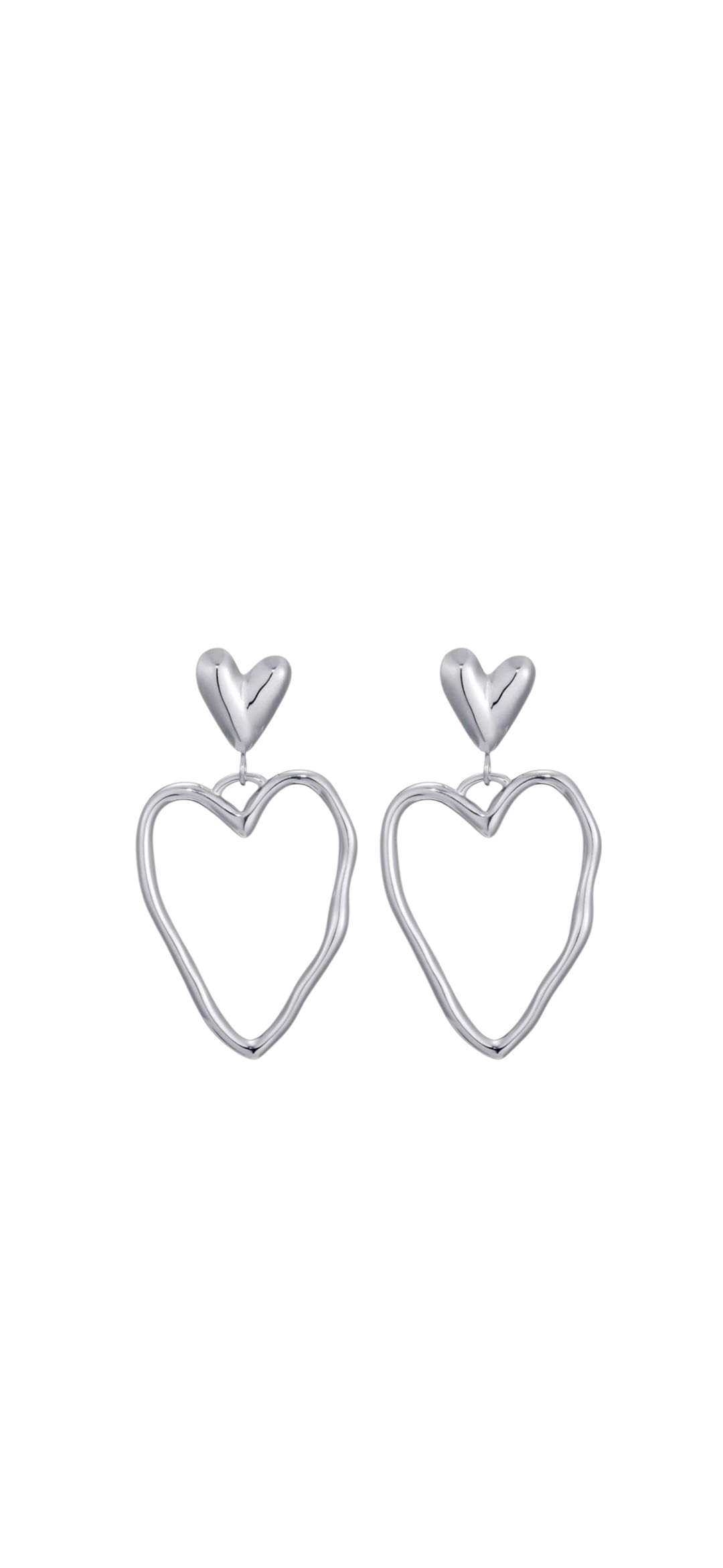 Deze prachtige zilverkleurige hartoorbellen van Sweet 7 zijn het perfecte accessoire voor een romantische en stijlvolle look. Het ontwerp combineert een speels, vol hartje bij de oorsteker met een grotere, open hartvorm als hanger. Hierdoor krijgen de oorbellen een moderne én vrouwelijke uitstraling.