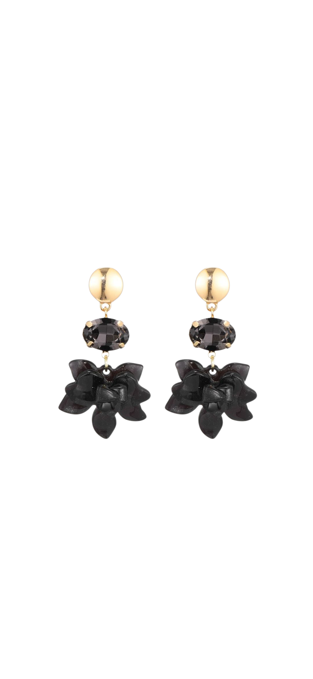 Maak je look compleet met deze charmante statement oorbellen van Sweet 7. De combinatie van de glanzende goudkleurige knop, een fonkelende smoke kristalsteen en de elegante zwarte strik zorgt voor een speelse, maar toch luxe uitstraling.