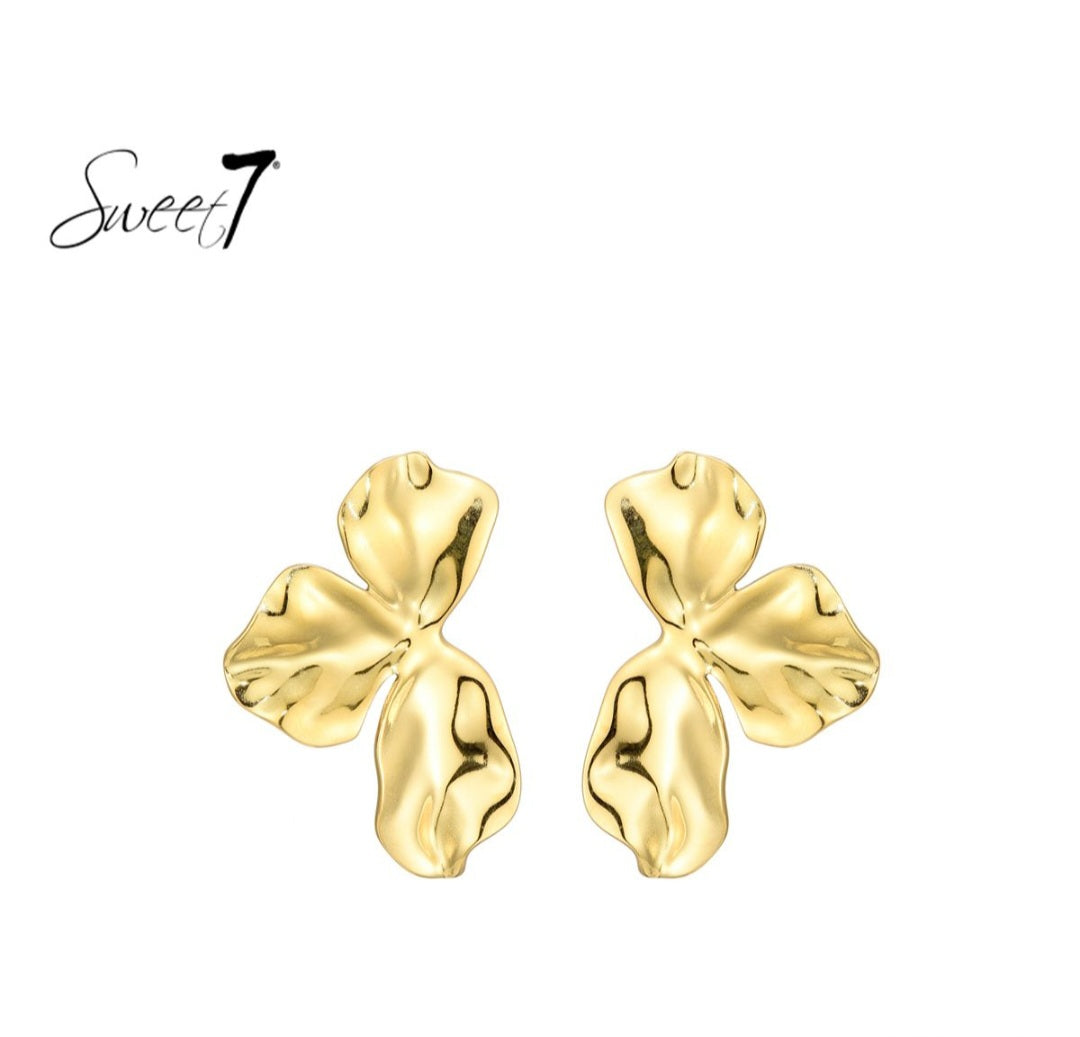 Voeg een vleugje natuurlijke schoonheid en luxe toe aan je look met deze gouden oorbellen van Sweet7. Het bloemdesign met speels gevouwen blaadjes heeft een organische vorm die doet denken aan een zachte bloesem in beweging. De glanzende, goudkleurige afwerking maakt deze oorbellen zowel elegant als eigentijds.