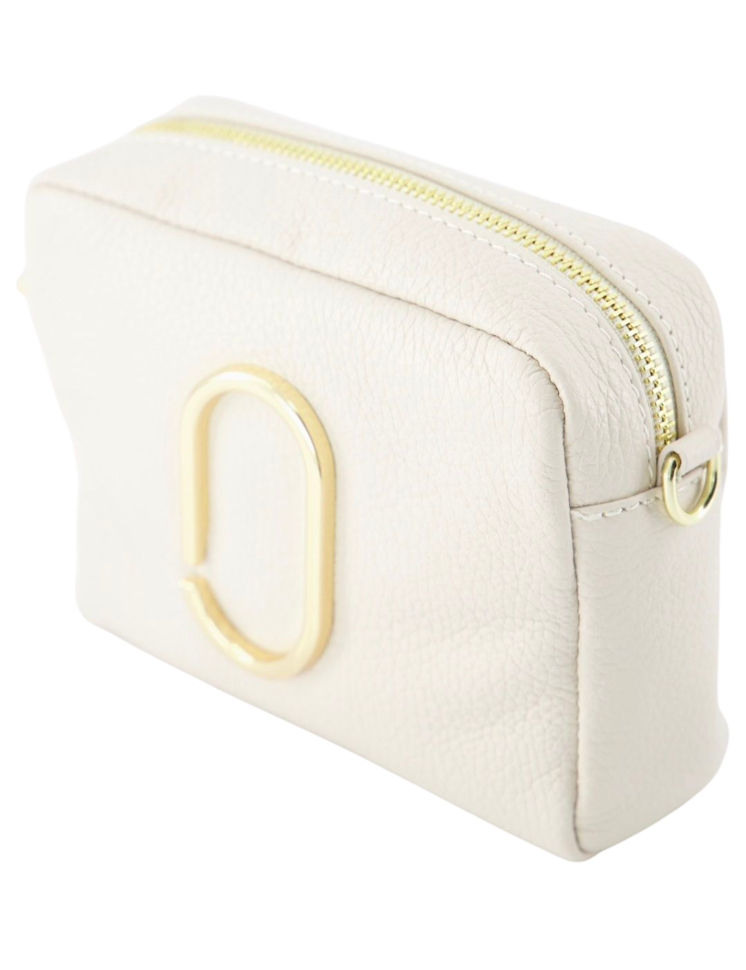 Minimalisme op zijn chicst – deze witte leren crossbodytas is het toonbeeld van understated luxe. Gemaakt van 100% echt leer met een subtiele nerfstructuur voelt deze tas niet alleen heerlijk aan, maar is hij ook duurzaam en tijdloos. Het stijlvolle goudkleurige O-accent op de voorzijde geeft de tas een modern en modieus karakter zonder te overdrijven.