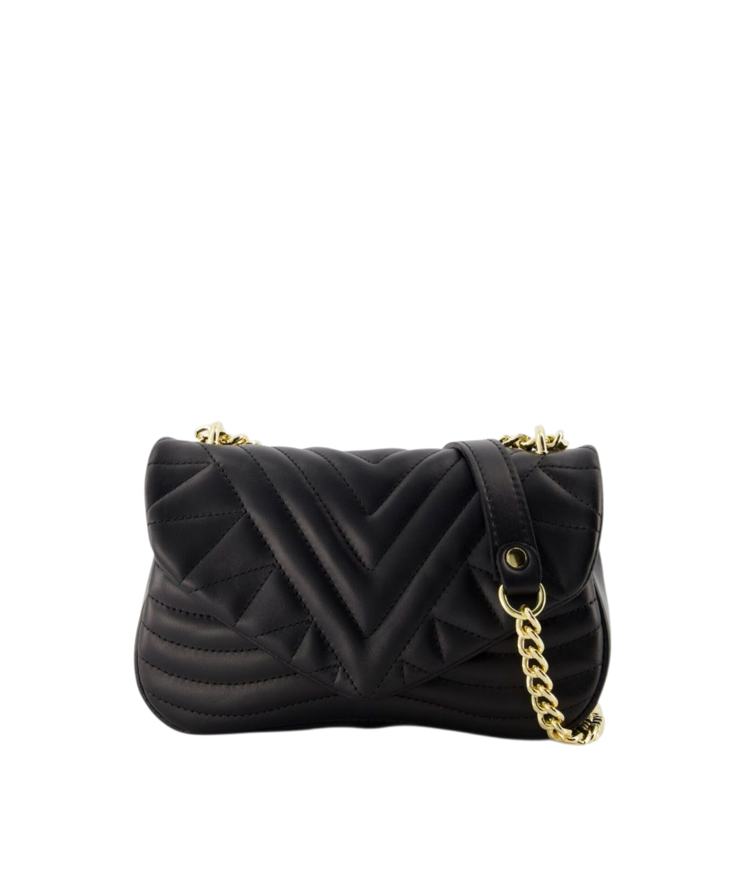 Deze zwarte leren chain bag combineert klassieke elegantie met moderne luxe. Vervaardigd uit hoogwaardig, echt leer en afgewerkt met een tijdloos gewatteerd chevron-patroon straalt deze tas pure klasse uit. De goudkleurige schakelriem voegt een glamoureuze touch toe, terwijl het zachte leer zorgt voor een comfortabele feel en een lange levensduur.