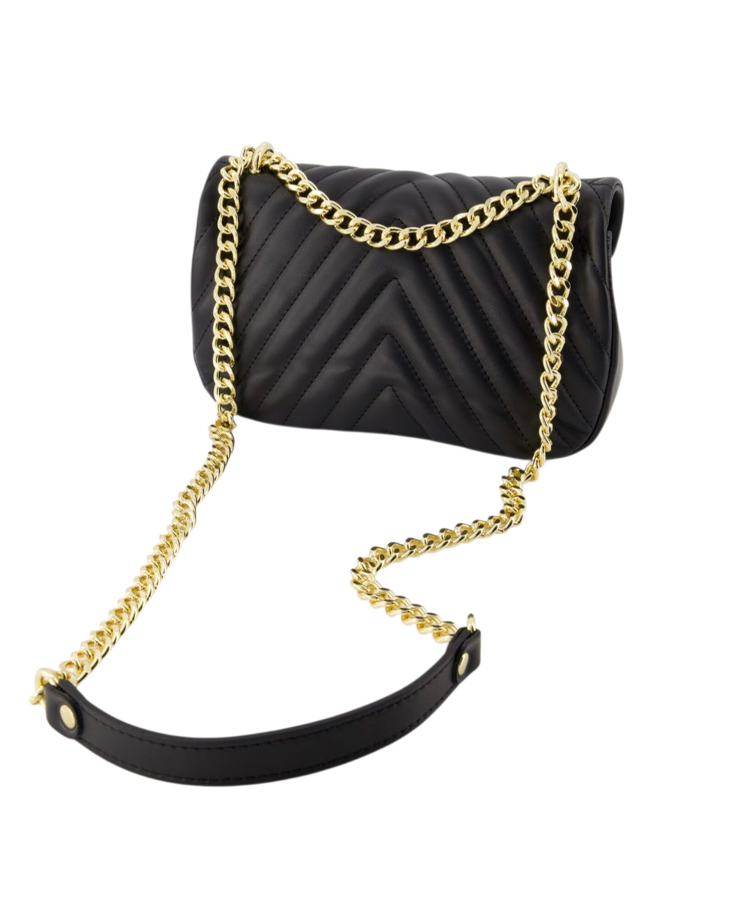 Zwarte Leren Chain Bag – Quilted Design met Gouden Schakelriem