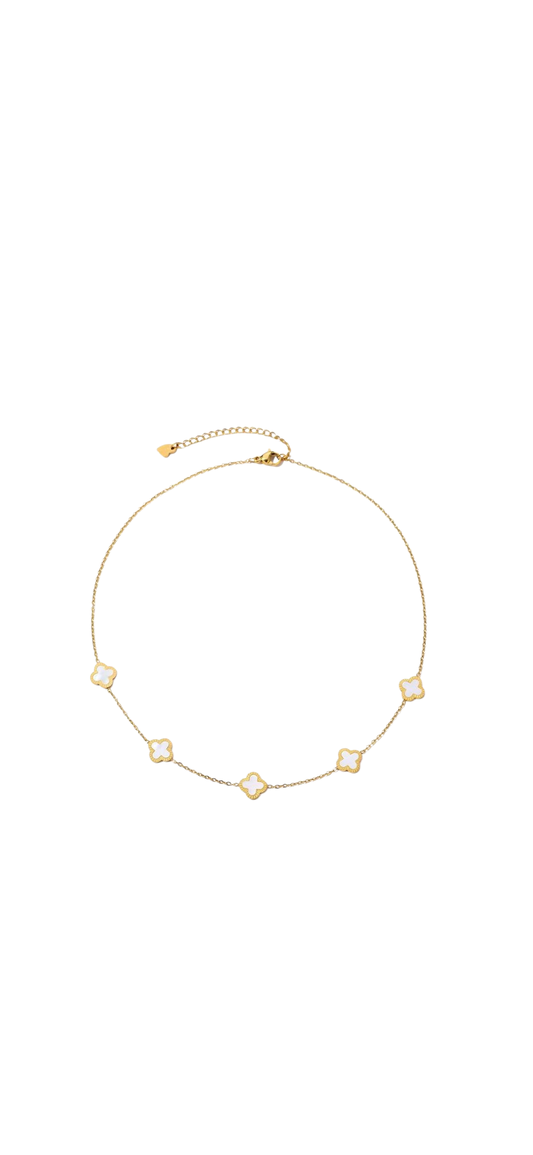 Een sieraad dat elegantie en tijdloze charme perfect combineert. Dit Golden Clover Necklace van Sweet 7 is verfijnd ontworpen met delicate schakels en sierlijke klaverhangers – hét symbool voor geluk en vrouwelijkheid. De zachte glans van goud in combinatie met de lichte accenten maakt dit collier een schitterende eyecatcher, zowel voor dagelijks gebruik als voor speciale gelegenheden.